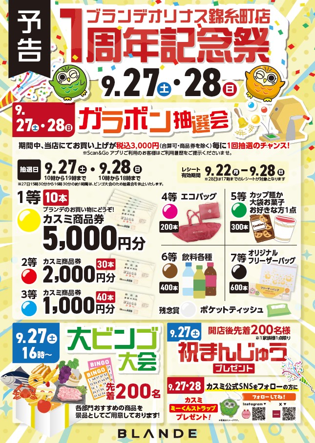 9月27日、28日‼︎オリナス錦糸町にて「BLANDEオリナス錦糸町店1周年記念祭!」が開催されます。