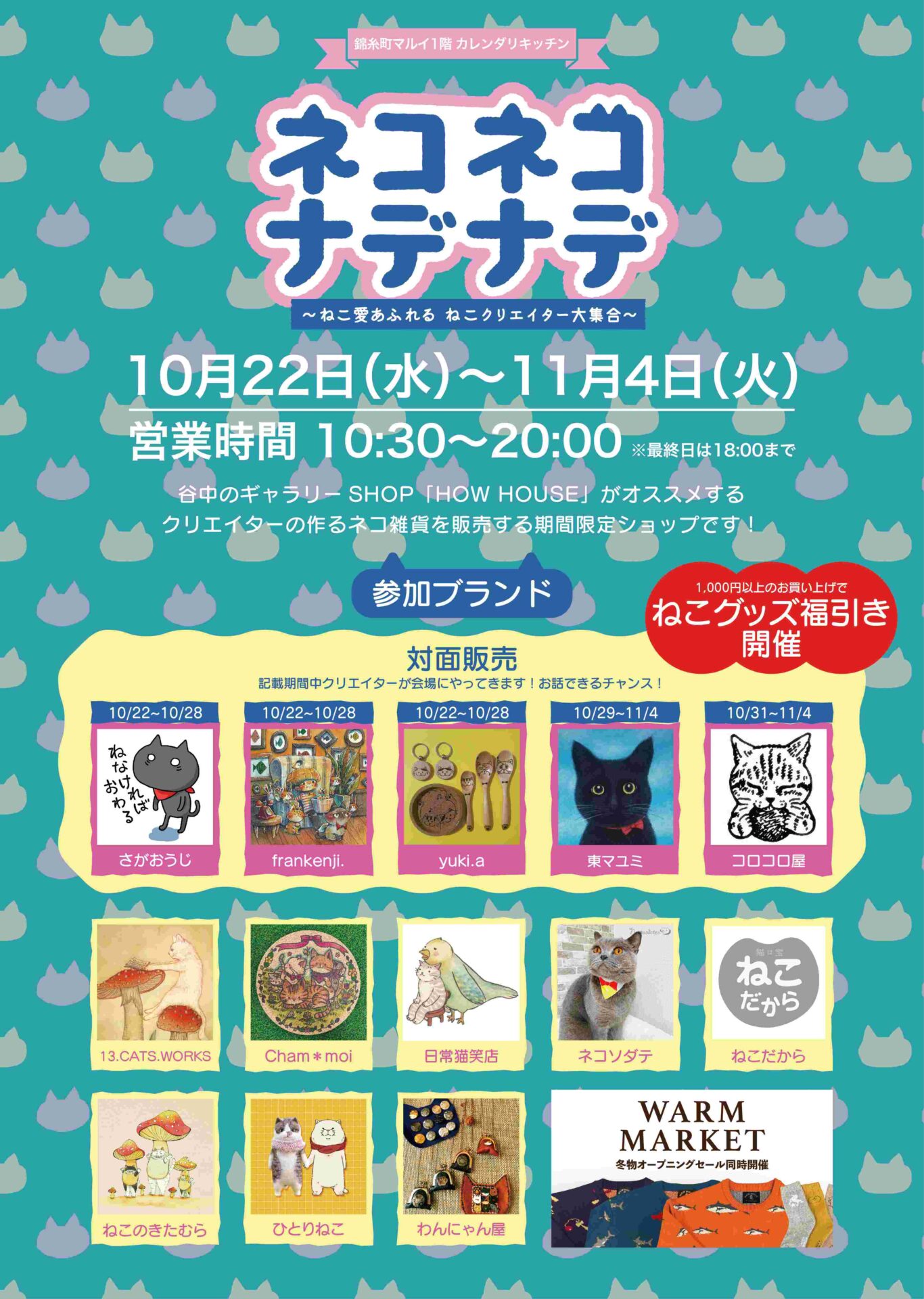 10月22日~錦糸町マルイにて「『ネコネコナデナデ』(ネコ雑貨etc…)」が開催中です。