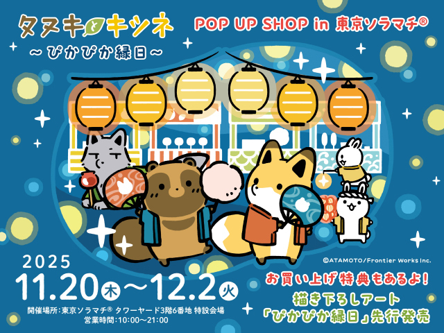 11月20日~東京ソラマチにて「タヌキとキツネPOP UP SHOP~ぴかぴか縁日~」が開催中です!